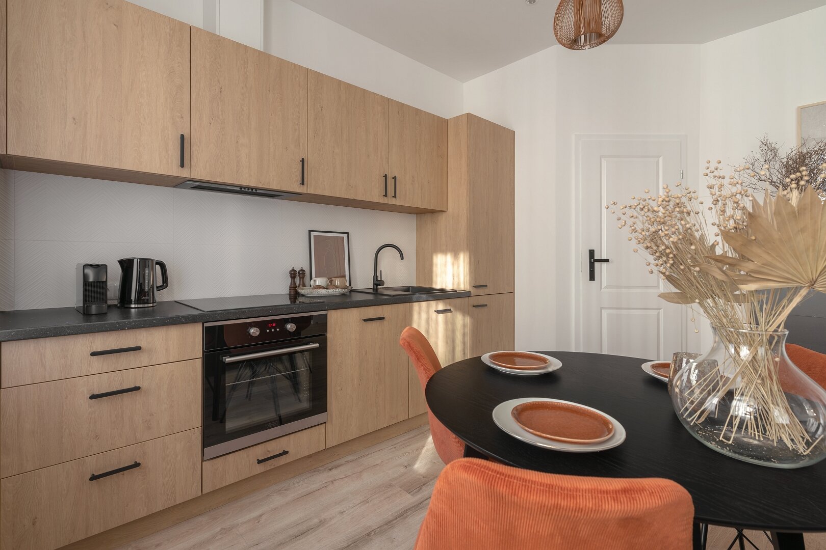 W środku znajdziesz odważne połączenie kolorystyczne, ale wciąż pozostaje tu spokojnie. Odrębna sypialnia ułatwi organizacje, więc jest to świetny wybór na kilka dni.