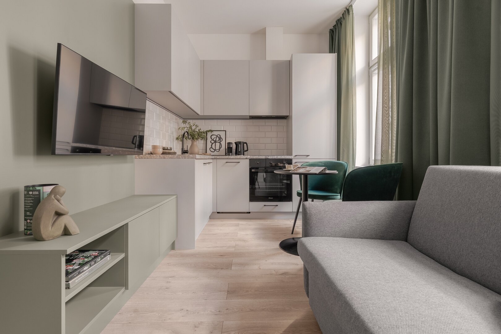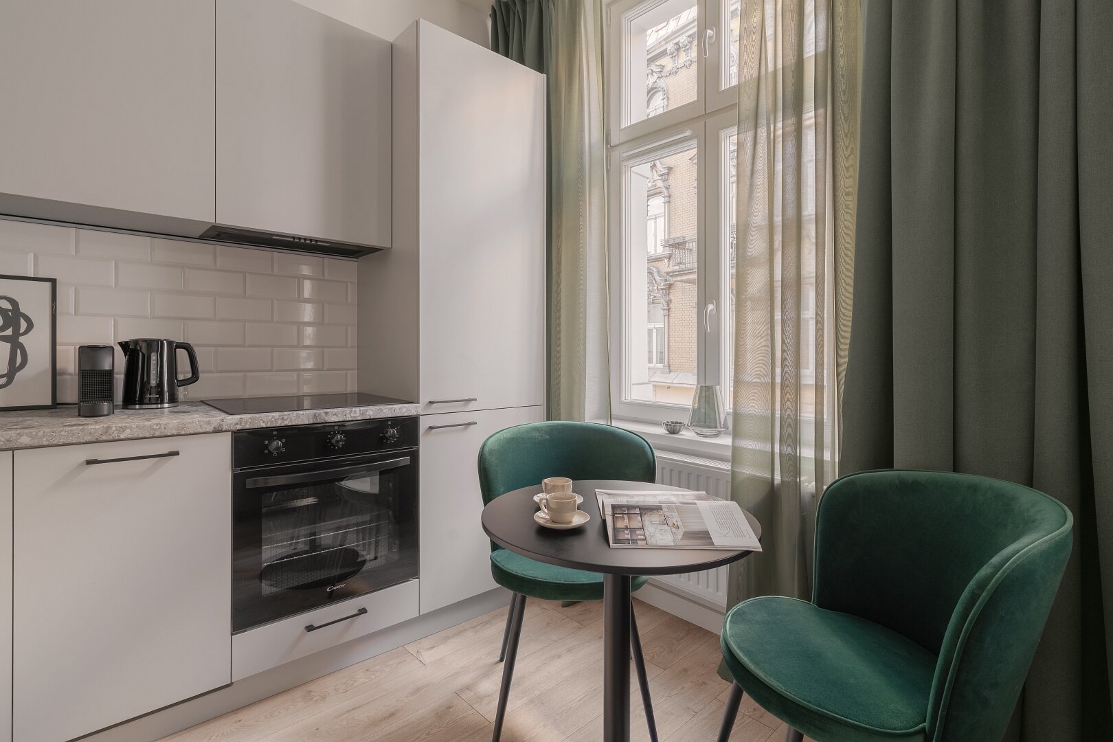Lubimy kontrasty, ale nie tylko kolorystyczne, dlatego stworzyliśmy zielony zakątek w środku miasta. Propozycja dla wielbicieli natury, na pewno poczujecie się tu wspaniale.
