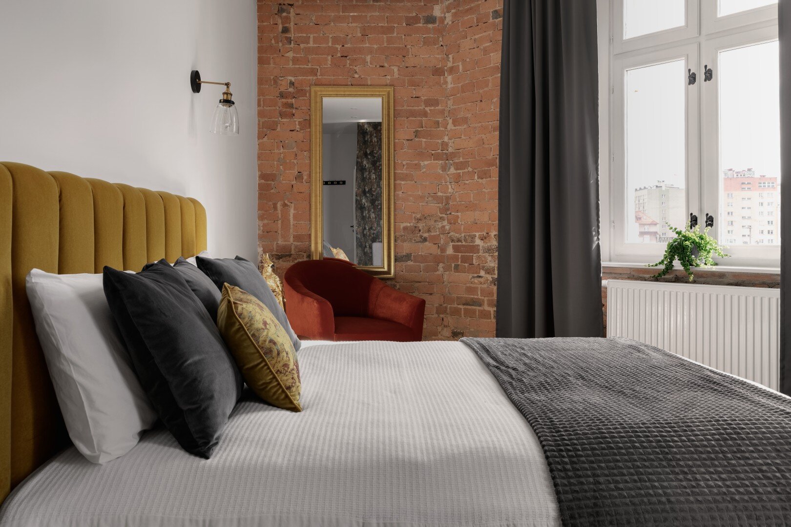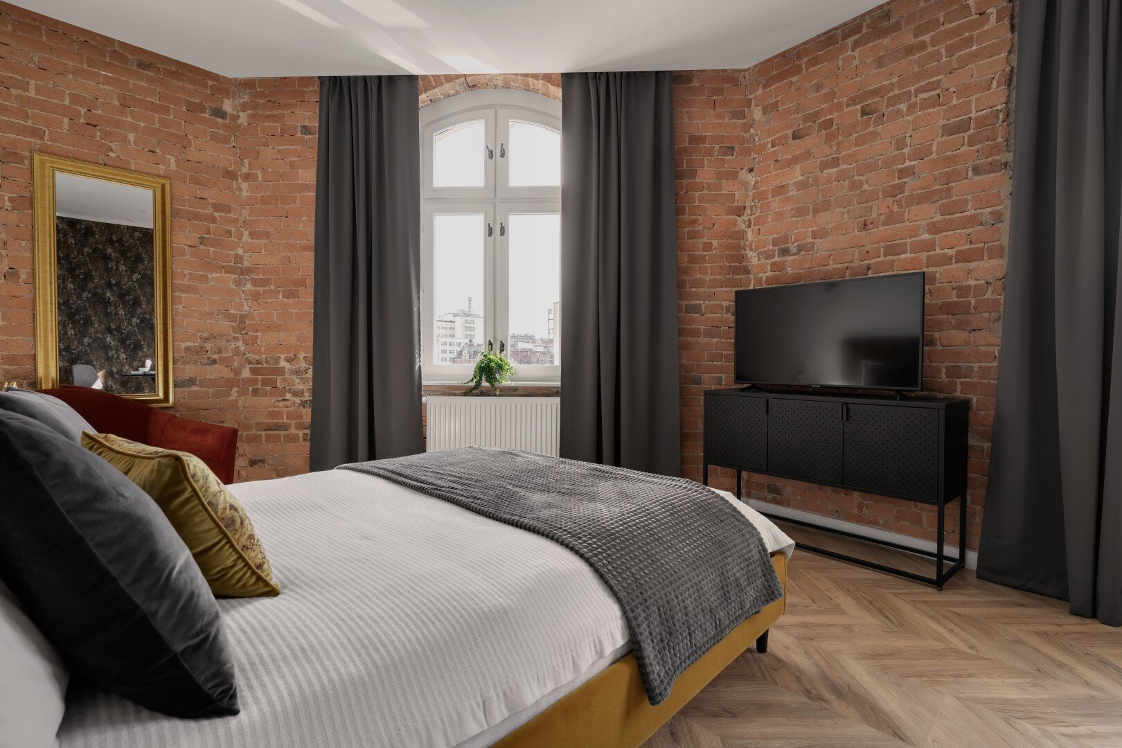 Prawdziwie ceglane ściany we wnętrzach odrestaurowanej kamienicy robią niesamowite wrażenie. Loftowy charakter w którym dosłownie możesz dotknąć historii.